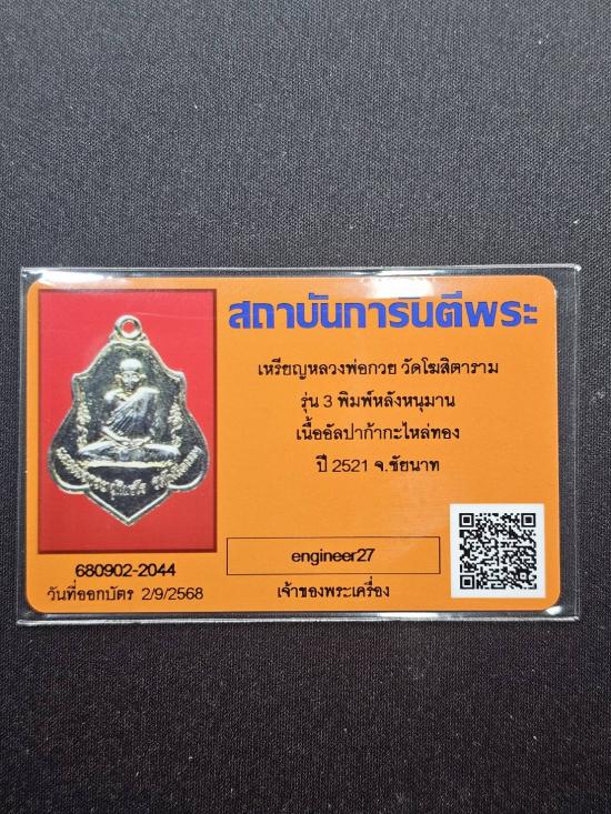 เหรียญหลวงพ่อกวยหลังหนุมานกะไหล่ทองเดิม อะระหังขาด 1 ตัว พร้อมบัตร G-Pra ( ไม่มีทองแล้วนะครับ )