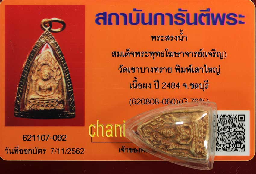 พระสรงน้ำ สมเด็จพระพุทธโฆษาจารเจริญ วัดเขาบางทราย พิมพ์เสาใหญ่ เนื้อผง ปี2484 จ.ชลบุรี สภาพสวยสมบูรณ์ พร้อมบัตรรับรองพระแท้จากการันตีพระสบายใจได้พระแท้แน่นอน ค่ะ
