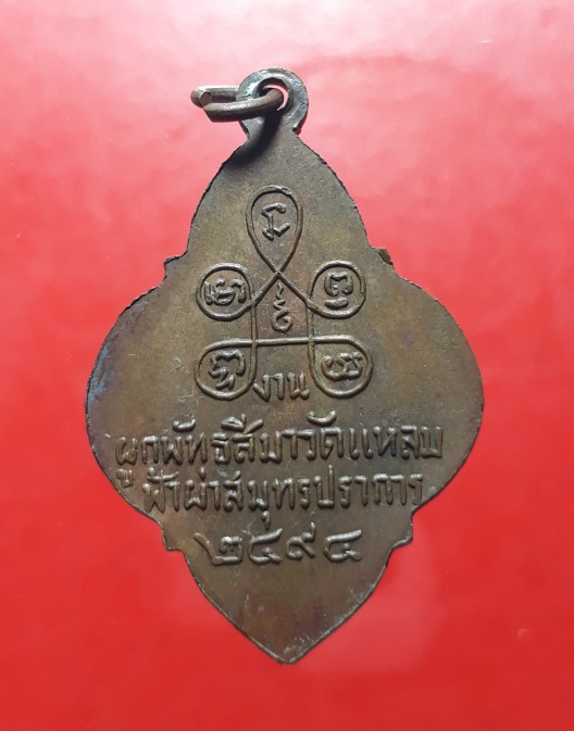เหรียญพระพุทธ วัดแหลมฟ้าผ่า สมุทรปราการ ปี 2494 เนื้อทองแดง เคาะเดียวแดง