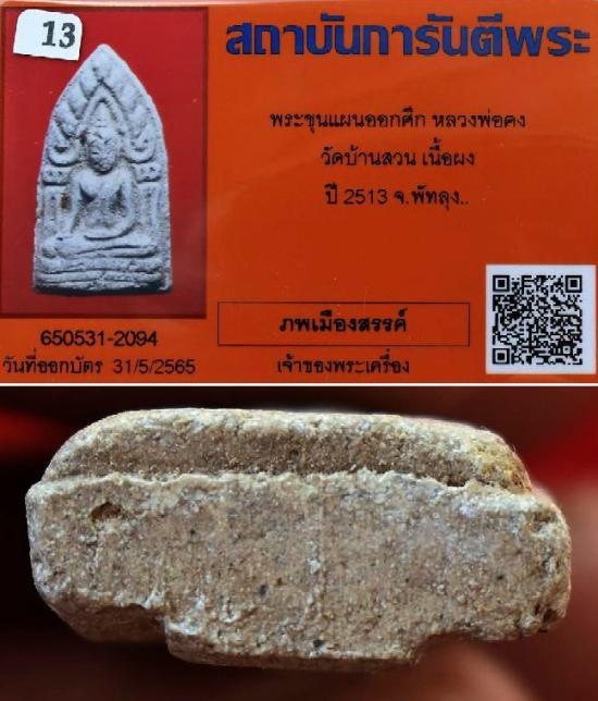 ( 13 ) พระผงบารมีคงไชยชุม พิมพ์พระขุนแผนออกศึก อ.ชุม ไชยคีรี , หลวงพ่อคง วัดบ้านสวน เนื้อผง ปี 2513 จ.พัทลุง ( มวลสารรุ่นนี้เข้มขลังมาก ) มาพร้อมบัตรรับรองพระแท้การันตีพระ