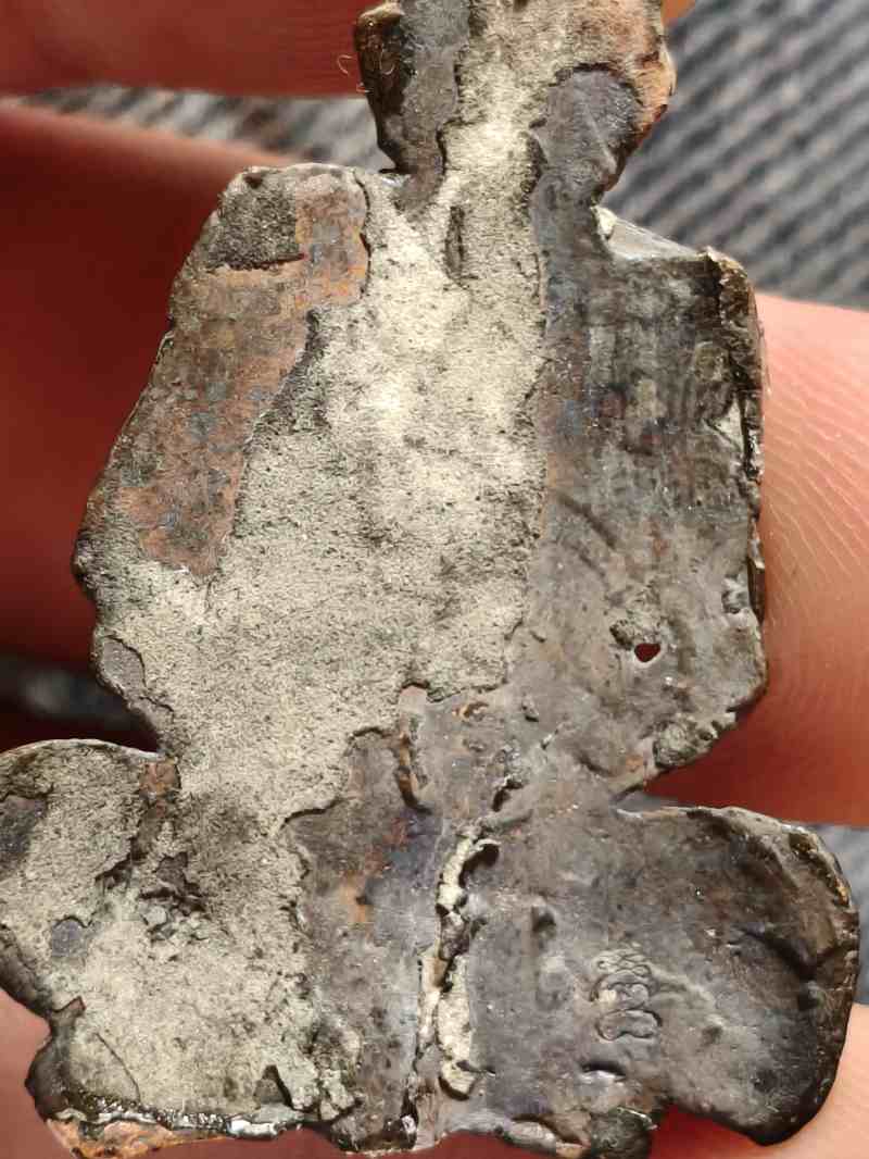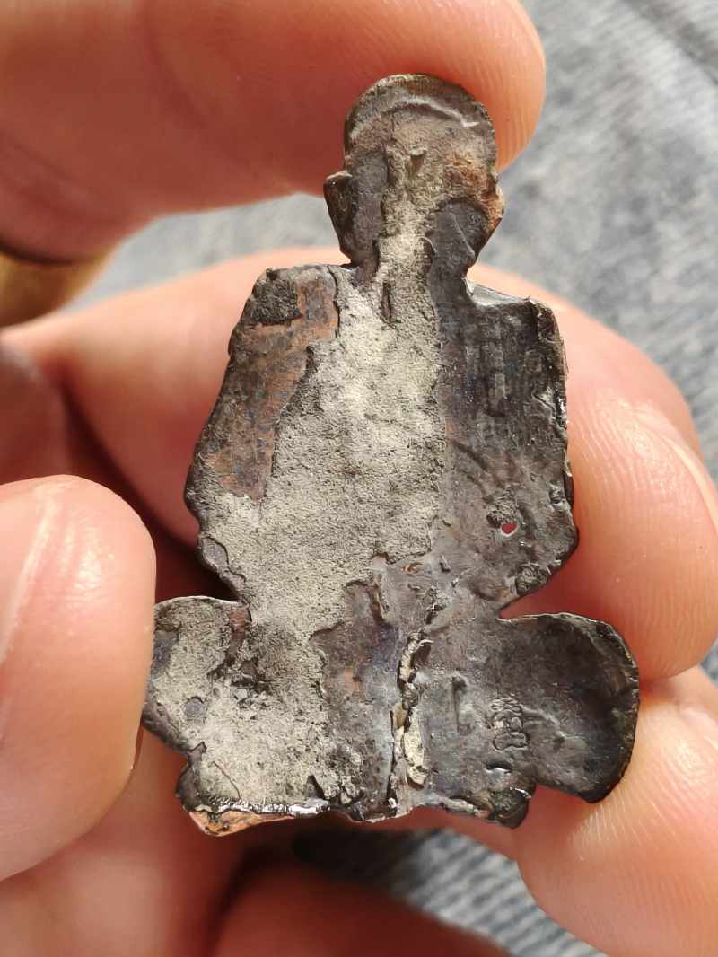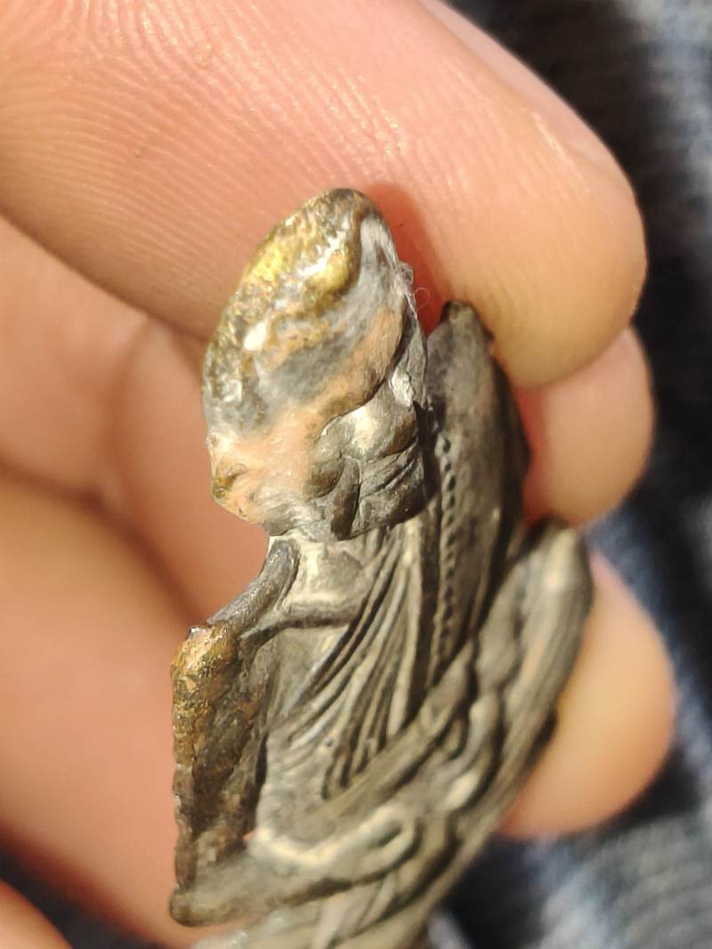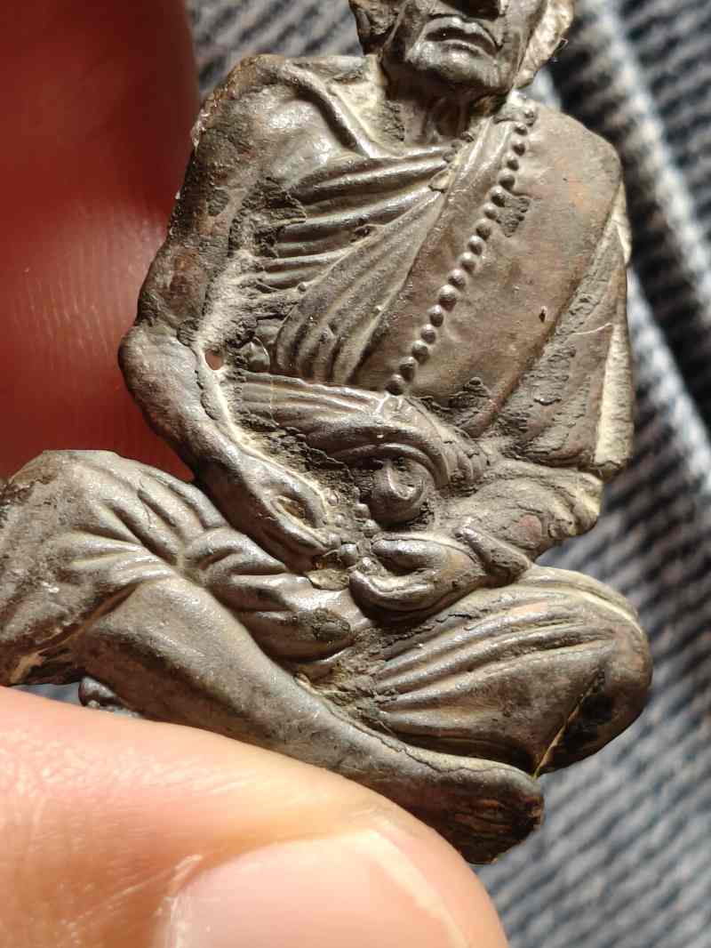 เหรียญหล่อครึ่งซีกติดบาตรน้ำมนต์หลวงปู่หมุน เนื้อนวโลหะ