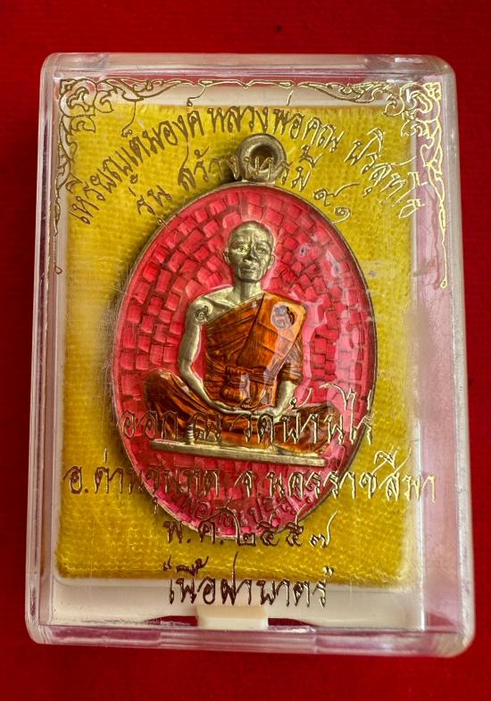 เหรียญหลวงพ่อคูณ รุ่น สร้างบารมี 91 ออกวัดบ้านไร่ ปี2557 เนื้อทองฝาบาตรลงยาสีชมพู (1 ใน 500 เหรียญ ) หมายเลข 2710 กล่องเดิม