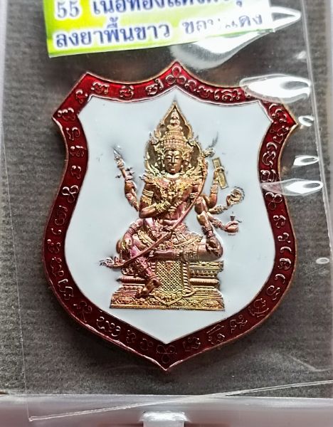 เหรียญท้าวมหาพรหม เจ้าสัวพันล้าน (จัดสร้างโดยบอย ท่าพระจันทร์) เนื้อทองแดงผิวรุ้ง ลงยาพื้นขาว ขอบแดง หมายเลข 1805 |