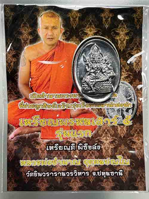 เหรียญพระพรหมเสาร์ห้า รุ่นแรก ปี 2560 พระพรหมรุ่นแรกวัดชิน กริป ซองเดิม หลวงพ่อชำนาญ วัดชินวราราม