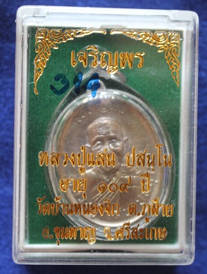 วัดใจ..100 เหรียญเจริญพรบน หลวงปู่แสน ปสนโน เนื้อนวะโลหะแก่เงิน หมายเลข 314 เลี่ยมพลาสติก |