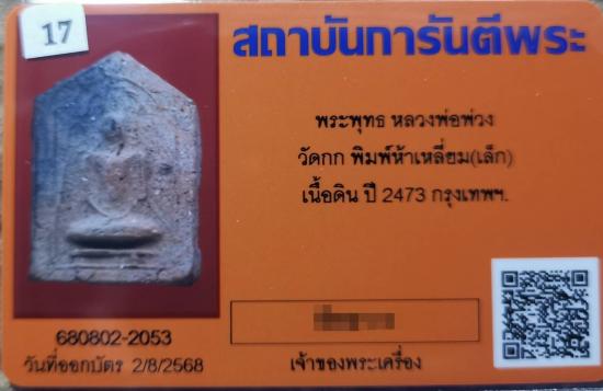 *เคาะเดียวแดงค่ะ*ลพ.พ่วง วัดกก พิมพ์ห้าเหลี่ยมเล็ก เนื้อดิน กรุเพดานโบสถ์ ปี2473 จ.กรุงเทพฯ |