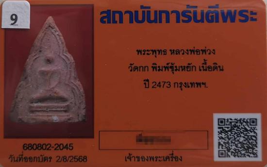*เคาะเดียวแดงค่ะ*ลพ.พ่วง วัดกก พิมพ์ซุ้มหยัก เนื้อดิน กรุเพดานโบสถ์ ปี2473 จ.กรุงเทพฯ พร้อมบัตรรับรอง |