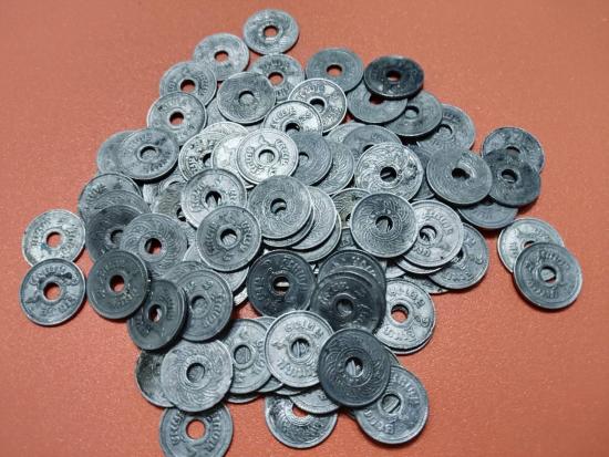 เหรียญสตางค์รู เนื้อนิกเกิล ราคา5สตางค์ จำนวน 100เหรียญ มีหลายพ.ศคละกัน สภาพผ่านใช้แต่สวยๆ (ชุดที่3)