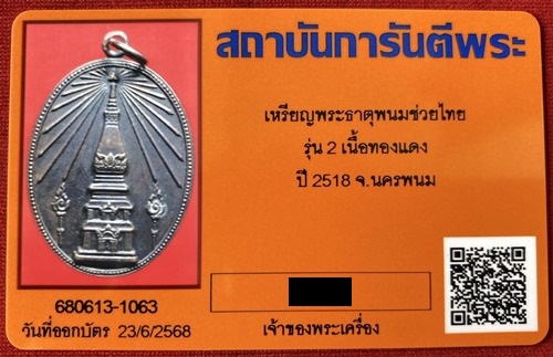 เหรียญพระธาตพนมช่วยไทย รุ่น 2 เนื้อทองแดง ปี 2518 จ.นครพนม สภาพสวย มาพร้อมบัตรรับรองครับ |