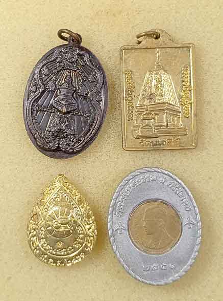 เหรียญญาทานดา บ้านตากแดด อุบลราชธานี +เหรียญสี่เหลี่ยม หลวงปู่มหาโส วัดป่าคำแคนเหนือ จ.ขอนแก่น + หลวงปู่สิงห์ทอง ปภากโร วัดป่าสุนทราราม ยโสธร+เหรียญรุ่นแรก หลวงปู่เณรคำ วัดป่าขันติธรรม ปีกเครื่องบิน |
