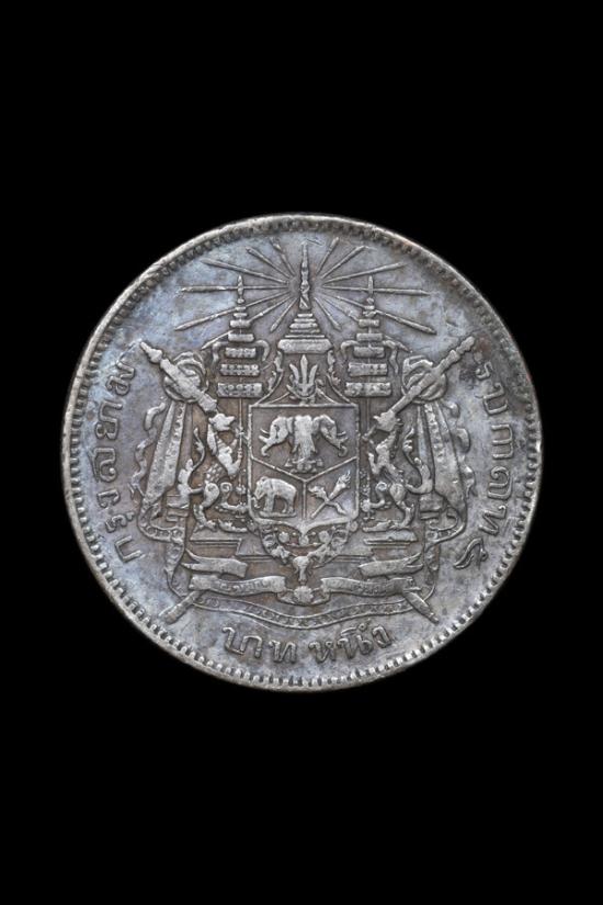 เหรียญเงิน บาทหนึ่ง ร.5 หลังตราแผ่นดิน
