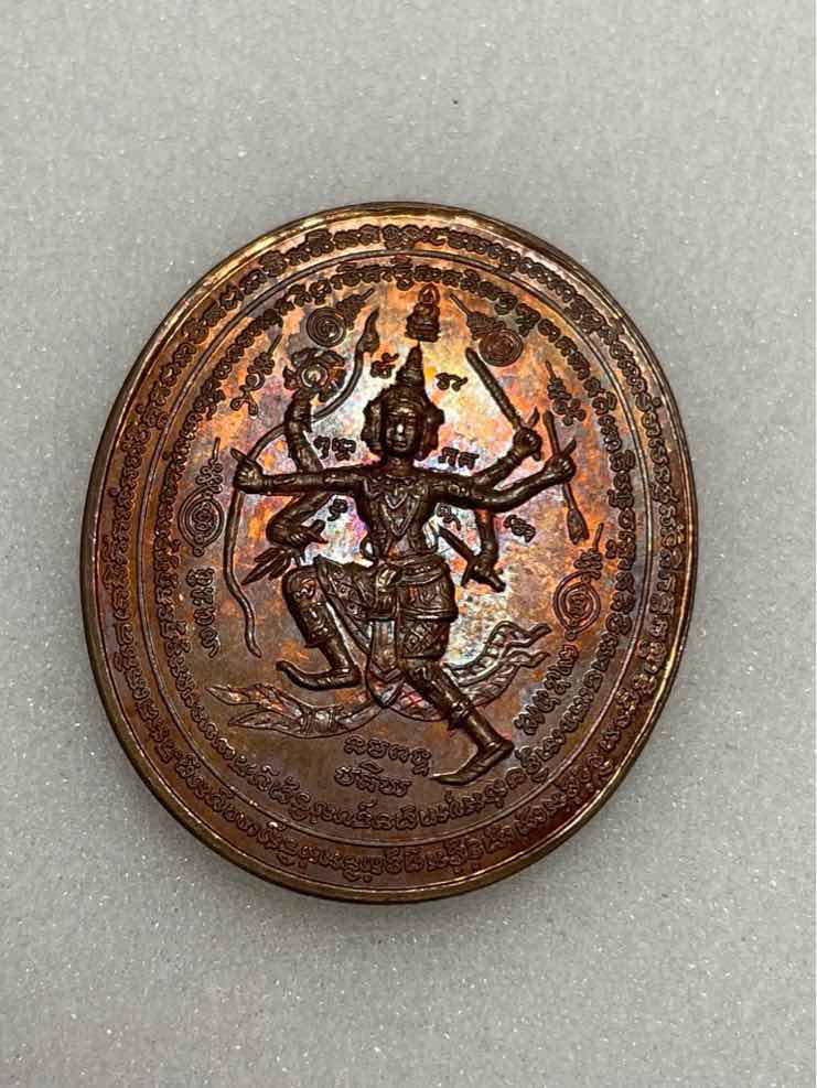 500.- ems เหรียญนารายณ์หลังหนุมานสิบกร รุ่นแรก เนื้อทองแดง อ.ต๊ะ วัดช้าง อ.บ้านนา จ.นครนายก ศิษย์เอก หลวงพ่อพรหม วัดขนอนเหนือ ผู้สืบสานตำนานพระกริ่งวัดช้างอันลือลั่น สภาพสวยแชมป์ๆ