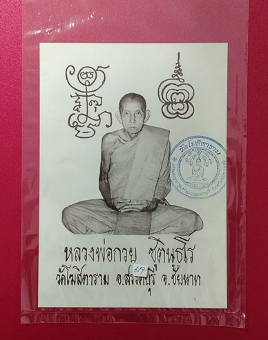 รูปถ่ายหลวงพ่อกวย ชุตินธโร วัดโฆสิตาราม พิมพ์ยันต์คู่ ปี 2561 |