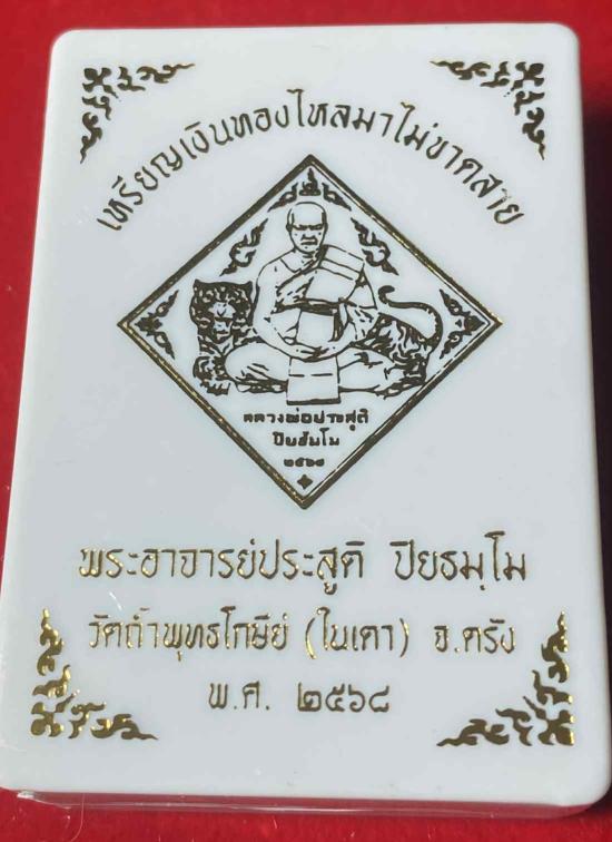 เหรียญข้าวหลามตัด"เงินทองไหลมาไม่ขาดสาย"หลวงพ่อประสูติ ปิยธัมโม วัดถ้ำพระพุทธโกษีย์(ในเตา)จ.ตรัง เนื้อสัตะโลหะ ลงยาจีวร หลังลงยาองค์พ่อปู่ หมายเลข ๕๑ พร้อมกล่อง เหรียญสวยมากๆจมูก100ๆ |