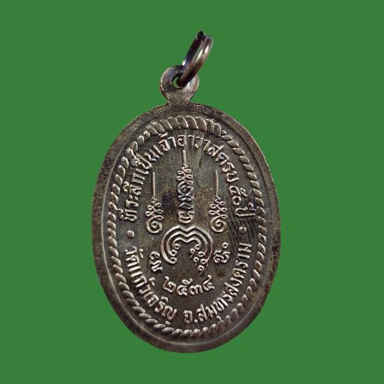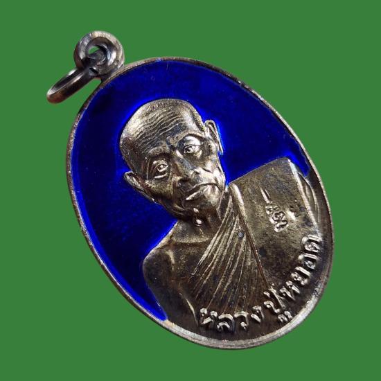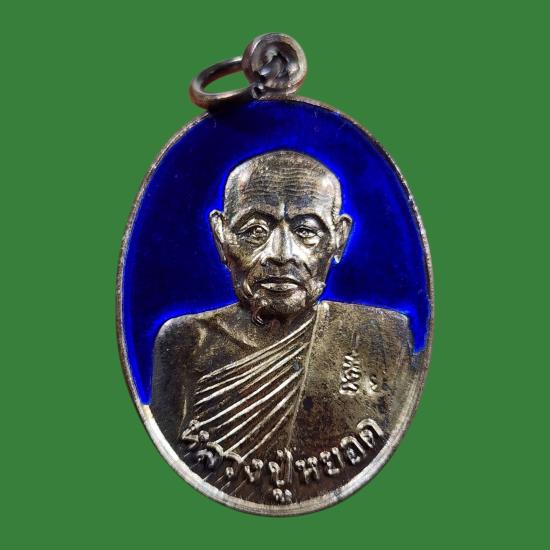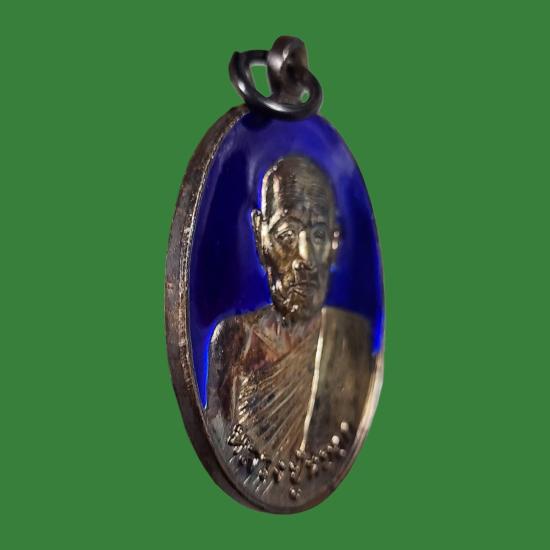 เหรียญเนื้อเงินลงยา หลวงพ่อหยอด วัดแก้วเจริญ สภาพสวยตามรูป