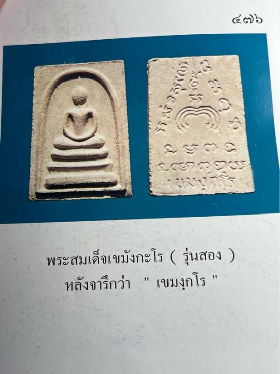 พระสมเด็จเขมังกะโร ( รุ่นสอง ) หลังจารึกว่า ว่า " เขมีงกโร "หลวงพ่อแพ ปี2519