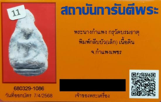 พระนางกำแพง กรุวัดบรมธาตุ พิมพ์กลีบบัวเล็ก เนื้อดิน จ.กำแพงเพรช พร้อมบัตรรับรอง G-PRA |