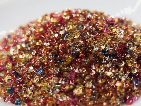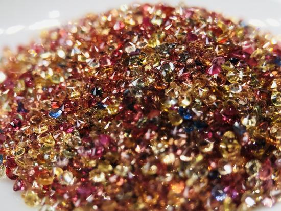 แฟนซีแซฟไฟร์ (ตัก) 3 กะรัต ไซส์ 1.3-2.5 MM. ( ทับทิม ไพลิน เขียวส่อง บุษราคัม พัดพารัชชา เรดแซฟไฟร์ ออร์เรนแซฟไฟร์ กรีนแซฟไฟร์) เจียระไนเหลี่ยมเพชร |