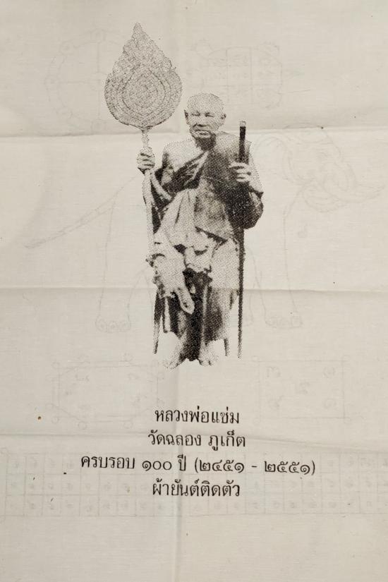 ผ้ายันต์​ติด​หลวงพ่อแช่มวัดฉลอง ภูเก็ตครบรอบ ๑๐๐ ปี (๒๔๕๑ - ๒๕๕๑) |