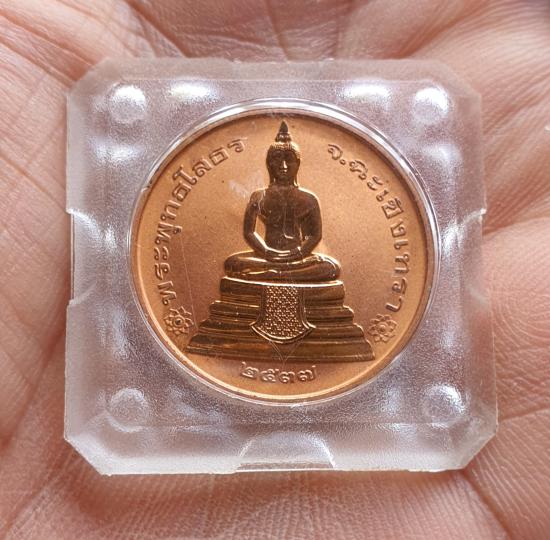 เหรียญพระพุทธโสธร นานาชาติ ปี 37 เนื้อทองแดง พิมพ์ใหญ่ พระเกจิ : พระเกจิคณาจารย์หลายรูป อาทิ พระพรหมมังคลาจารย์ (เจ้าคุณธงชัย วัดไตรมิตรฯ) , หลวงปู่ฟู วัดบางสมัคร ,หลวงพ่อสุรศักดิ์ วัดประดู่ ฯลฯ