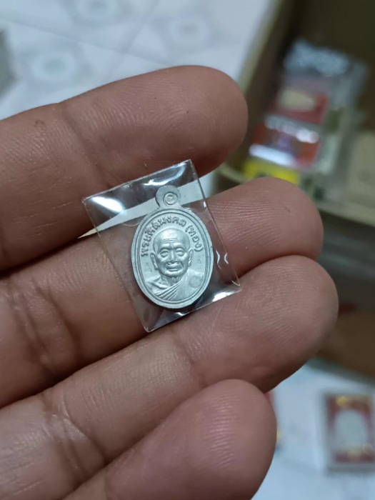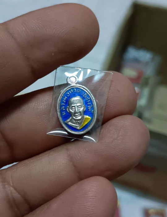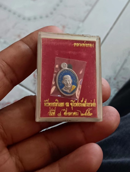 เหรียญเม็ดแตง หลวงปู่ทวด หลวงพ่อทอง เนื้อเงินลงยาสีน้ำเงิน รุ่นทองฉลองเจดีย์ ปี 2552 |
