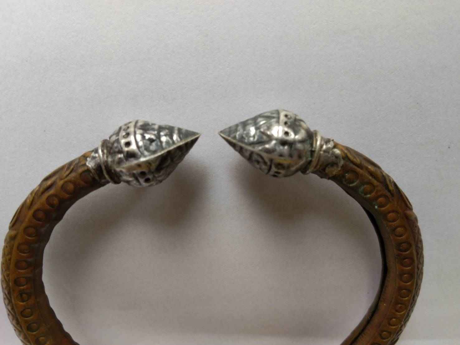 กำไลเก่าปลายหุ้มเงินแท้ เนื้อทองแดง ไม่ทราบที่ |
