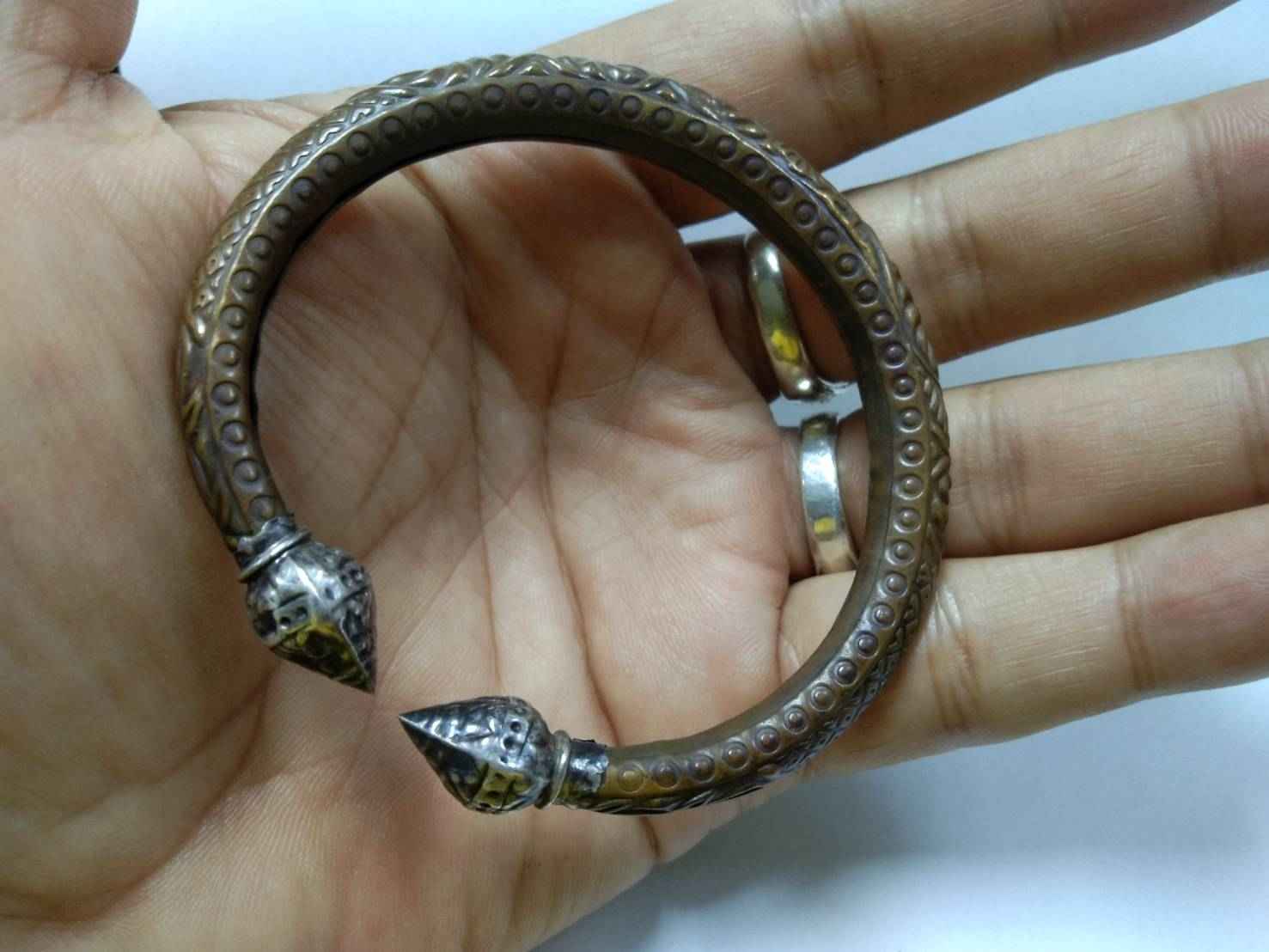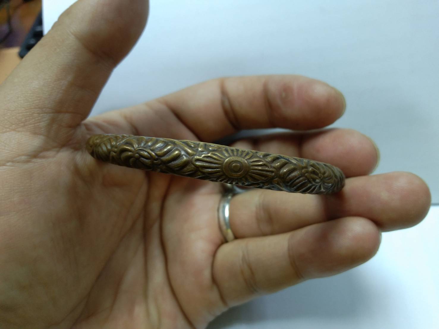 กำไลเก่าปลายหุ้มเงินแท้ เนื้อทองแดง ไม่ทราบที่เคาะเดียว |