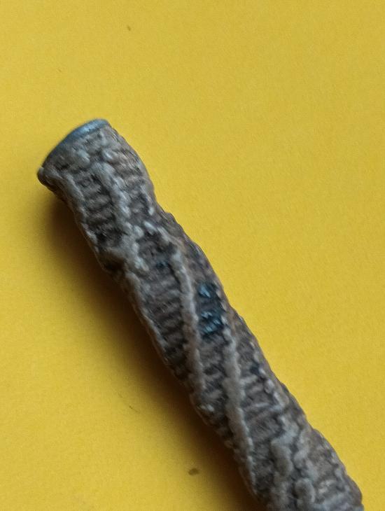 เป็นตะกรุดเก่า เนื้อตะกั่วสีดำ รักเก่าสีดำแห้ง ลายเชือกถักโบราณมาก ความยาว 1.5นิ้ว |