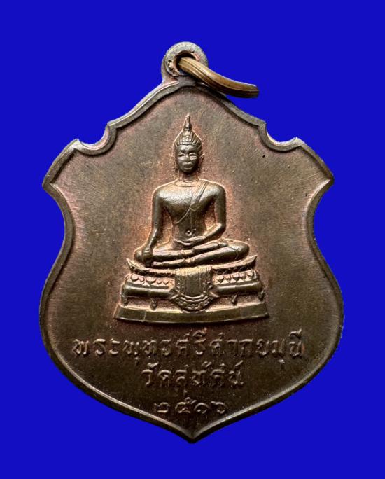 วัดใจเคาะเดียวแดง เหรียญพระพุทธศรีศากยมุนี วัดสุทัศน์ หลัง อปร. รัชกาลที่ 8 ปี 2516 เนื้อนวะโลหะ หลวงปู่โต๊ะปลุกเสก พิธีใหญ่