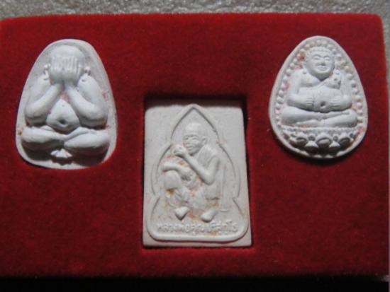 วัดใจเคาะเดียว........150.......พระผงกริ่งผสมยาสูบ ( ชุด 3 องค์ , สังกัจจายน์,ปิดตา,รูปเหมือ นนั่งยอง ) รุ่น พิเศษ ปี 2535 รวม 2 ชุด 6 องค์ กล่องเดิม