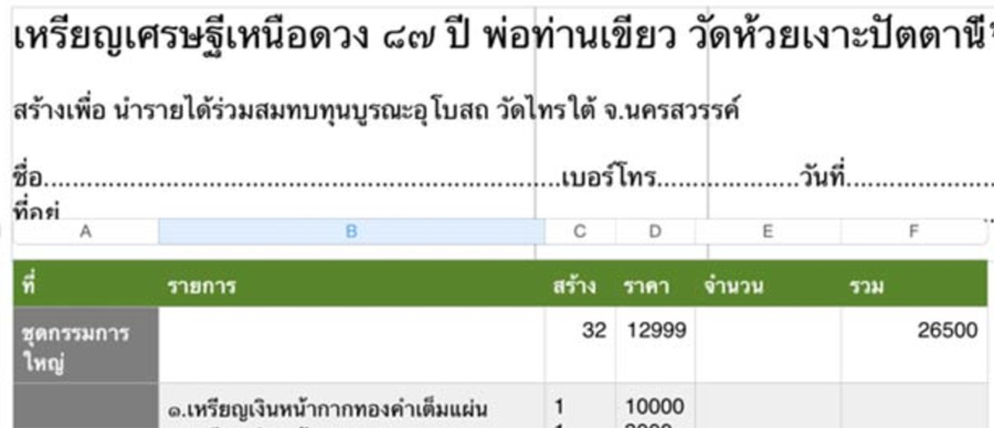 สร้าง ๓๒ เหรียญ ราคาในใบจอง ๑๐๐๐๐ บาท