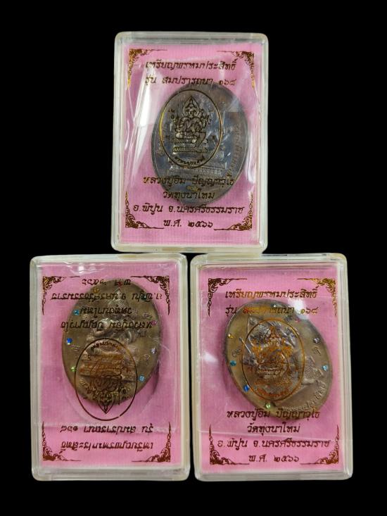 เหรียญพรหมประสิทธิ์ หลวงปู่อิ่ม วัดทุ่งนาใหม่ นครศรีธรรมราช รุ่นสมปรารถนา 168 สวยๆมีหมายเลขกำกับทุกองค์จำนวน 3 องค์กล่องเดิมวัดใจกันไปเลยเคาะแรกแดงครับ |