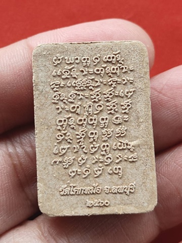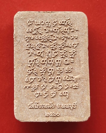 จารึกเป็นอักขระภาษาอินเดียโบราณ เป็นยันต์ยอดเกศ หรือยันต์ร้อยช่อง ตามตำรับโบราณ ยันต์นี้ทรงอานุภาพทางป้องกันและสยบคุณไสย คุณผี คุณคน ทุกชนิด ตลอดจนเป็น มหาอำนาจ มหาอุต ขจัดปัดเป่าอุปสรรคต่างๆ เป็นยันต์ที่มีอิทธิฤทธิ์สูงยิ่ง ใช้ได้ร้อยช่องร้อยประตูตามแต่อธิษฐานแล..