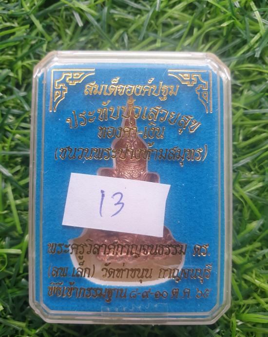 สมเด็จองค์ปฐม นั่งบัวเสวยสุข เนื้อทองแดง พิมพ์ใหญ่ เลข ๑๓ หลวงพ่อเล็ก วัดท่าขนุน กล่องเดิม ซีลเดิม |
