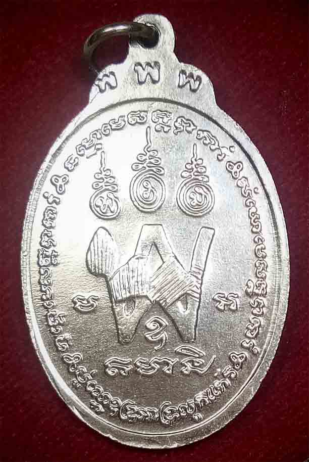 เหรียญ หลวงปู่เย็น วัดสระเปรียญ หลังยันต์ พ ชัยนาท....กะไหล่เงิน |