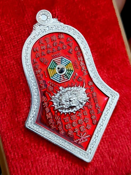 เหรียญกันชง พิมพ์ใหญ่ ปี 65 ทรงจำปี หลวงพ่ออิฏฐ์ วัดจุฬามณี จังหวัดสมุทรสงคราม เนื้อเงิน ลงยาสีแดง สวยมากๆ กล่องครบครับ
