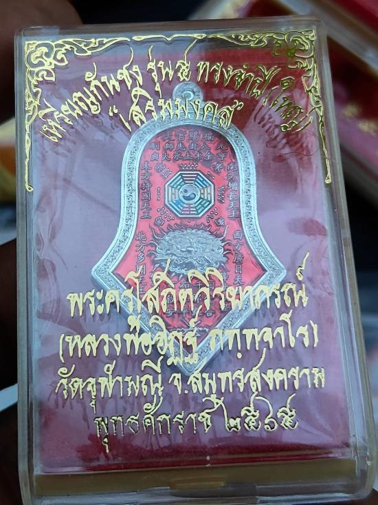 ออกวัด 2,500 เหรียญกันชง พิมพ์ใหญ่ ปี 65 ทรงจำปี หลวงพ่ออิฏฐ์ วัดจุฬามณี จังหวัดสมุทรสงคราม เนื้อเงิน ลงยาสีแดง สวยมากๆ กล่องครบครับ