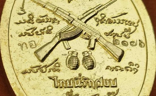 เหรียญพหูรมาน รุ่น"หนุมานแผลงฤทธิ์พิทักษ์ไทย" รุ่น3ของหลวงปู่ศิลา ในการอธิฐานจิตปลุกเสก ออกวัดดอนสาย รก.ที่12แจกแก่เหล่าทหาร เนื้อทองโบราณบ้านเชียง ตอก"ทอ"(สร้าง9,999เหรียญ) หมายเลข ๒๑๗๖ พร้อมกล่อง