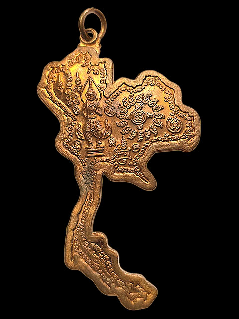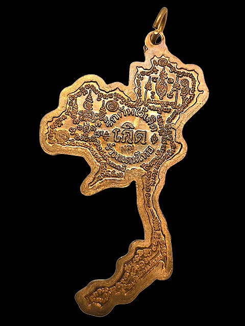 .........รูปแบของเหรียญรักชาตินี้ เป็นเหรียญที่มีความเป็นเอกลักษณ์เฉพาะไม่เหมือนใคร แต่ทรงคุณค่าทางจิตใจเป็นอย่างยิ่ง กล่าวคือเป็นรูปแผนที่ประเทศไทย อันเป็นมาตุภูมิที่มีความศักดิ์อยู่ในตัว จนได้ชื่อว่าเป็นสุวรรณภูมิ เพราะความอุดมสมบูรณ์ของพืชพันธ์ธัญญาหาร ความเจริญรุ่งเรืองทางด้านศาสนา วัฒนธรรมที่หยั่งรากลึกมานับพันปี ด้านหน้าประจุด้วยพระคาถาพระพุทธเจ้าสิบชาติ ด้านหลังประจุด้วยพระคาถาพระอรหันต์แปดทิศ ตรงกลางเหรียญประทับด้วยภาษาไทยที่เตือนใจให้ชาวไทยทั้งปวงสำนึกรักในแผ่นดินขวานทองนี้ว่า รักกันไว้เถิด เกิดร่วมแดนไทย เพื่อเป็นการประสิทธิ์คุณแห่งพระรัตนะตรัย ท่านว่าคุณแห่งพระรัตนตรัยเป็นคุณแห่งความบริสุทธิ์ หากจะให้เร็วแรงมีอิทธิฤทธิ์โดยตรงแล้ว ก็ต้องอาศัยบารมีพระสยามเทวาธิราชผู้เป็นเทพยดาประจำประเทศไทยนี่แหละจึงจะตรงงาน การจะอัญเชิญฤทธานุภาพแห่งพระสยามเทวาธิราช ให้ประสิทธิ์ประสาทประดุจหนึ่งแฝงกายไว้ในแต่ละเหรียญนั้น คงจะไม่ใช่เรื่องเกินกำลัง เพราะด้วยเจตนาดีเป็นประโยชน์ต่อสาธารณะ และสยามประเทศเหตุใดเทวดาอารักษ์ทั้งหลายจะไม่เห็นดีเห็นงามด้วยเล่า การสร้างของสำคัญเช่นนี้ถ้าจะให้ดี ให้ใช้แผ่นตะกรุดแทนชนวนโลหะทั้งหมดเลย เรียกว่าลงแผ่นต่อแผ่นกันเลยทีเดียว ไม่ใช่ว่าเอาชนวนมาทำท่าเจิมๆกันเท่านั้น เอาให้มีอำนาจแห่งการอธิษฐานจิตอยู่ทุกอณูโลหะ ไม่ต้องมีช่องว่างที่เปล่าประโยชน์เลยทีเดียว