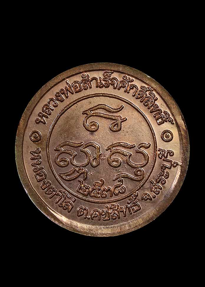 เหรียญกลมเล็ก หลวงพ่อสำเร็จศักดิ์สิทธิ์ พ.ศ.2538 เนื้อทองแดงผิวไฟ