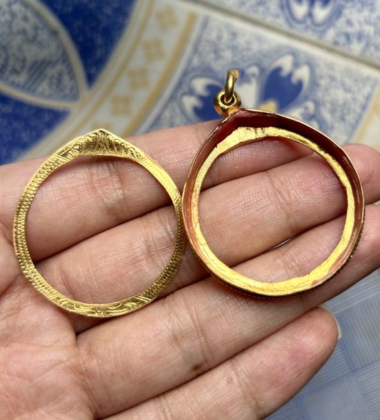 เคาะเดียว..กรอบทองอิตตาลี่ งานสั่งตัดยกซุ้มแกะลาย งานคุณภาพสูง ทำมา1600 เส้นผ่าศูนย์กลางกว้าง3.2 เเกะออกจากเหรียญมหาลาภ ไม่ค่อยได้ใช้งาน ใช้งานได้ปกติ