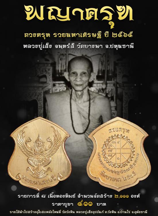 !!!! 5 เหรียญ !!!! เหรียญ "ดวงครุฑรวยมหาเศรษฐี" ของวัดบางนา จังหวัดปทุมธานี รุ่นปี 2565 เนื้อทองทิพย์ ซีลเดิม (จอง 400 บาท/เหรียญ)