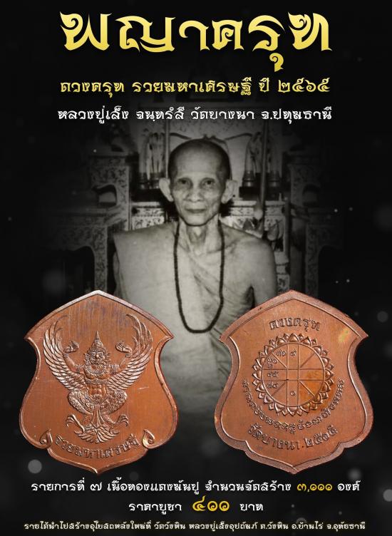 !!!! 5 เหรียญ !!!! เหรียญ "ดวงครุฑรวยมหาเศรษฐี" ของวัดบางนา จังหวัดปทุมธานี รุ่นปี 2565 เนื้อทองแดงมันปู ซีลเดิม (จอง 400 บาท/เหรียญ) |