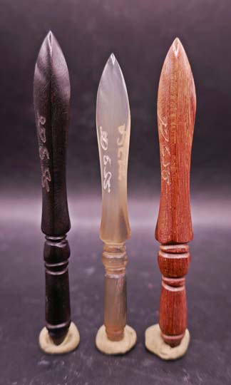 !!!!วัดใจ 9 บาท!!!! 3เล่ม พระขรรค์เขาควายแกะ รุ่นไตรมาศ44 หลวงพ่อเปิ่น วัดบางพระ พ.ศ.2544 เข้มขลัง และหายากมากๆ เนื้อเขาควายเผือก,ไม้พยุง,เขาควายดำ