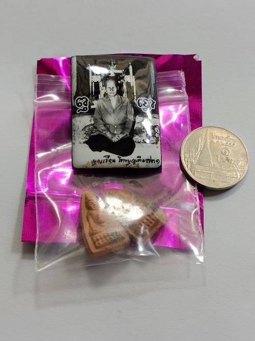 " วัดใจ เคาะเดียวแดง " ล็อกเก็ต รูปถ่ายแม่ชีบุญเรือน โตงบุญเติม รุ่นบันดาลทรัพย์คลังมหาสมบัติ ปี 68 หลังฝังพระพุทโธน้อย มวลสาร ฯลฯ หมายเลข 731 + พระพุทโธน้อย ดินเผา หลังรวยใหญ่ 2 องค์ (แจกทานชุดพิเศษ) พระครูปลัดวราศักดิ์ ญาณวิชโย วัดสันป่าม่วง จ.พะเยา เดิมมาไม่มีกล่องครับ ล็อกเก็ตขนาดห้อยคอ ขนาด 2.5x3.5 ซม.โดยประมาณ , พระพุทโธน้อย สูงโดยประมาณ 1.8 ซม.