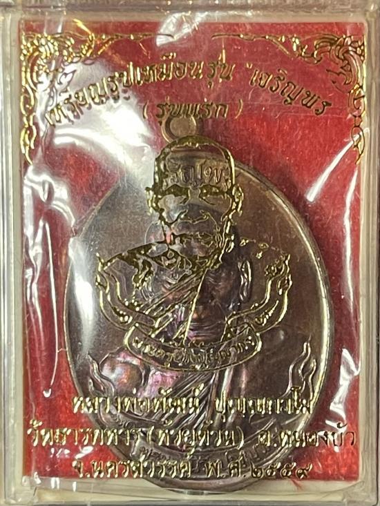 เหรียญหลวงพ่อพัฒน์ วัดห้วยด้วน เจริญพร(รุ่นแรก) ปี ๕๙ เนื้อโลหะผสมชนวน เลข ๔๖๔๓ สวยๆพร้อมกล่องเดิม |