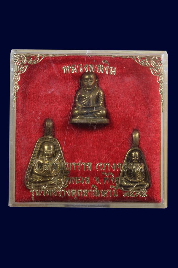 รูปหล่อหลวงพ่อเงิน 3 องค์ วัดบางคลาน รุ่นวัดสร้างพุทธาภิเษกปี 2535 ครบชุดพร้อมกล่องเดิม |