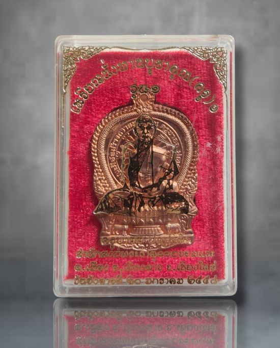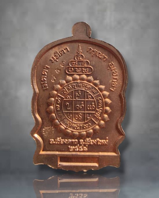 เหรียญนั่งพาน บูชาครู หลวงปู่ครูบาออ ปัณฑิต๊ะ สำนักสงฆ์พระธาตุดอยจอมแวะ ปี 2558 เนื้อทองแดงผิวไฟแท้ทันครูบาออปลุกเสก |