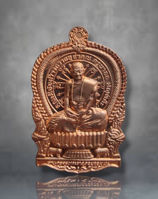 เหรียญนั่งพาน บูชาครู หลวงปู่ครูบาออ ปัณฑิต๊ะ สำนักสงฆ์พระธาตุดอยจอมแวะ ปี 2558 เนื้อทองแดงผิวไฟแท้ทันครูบาออปลุกเสก