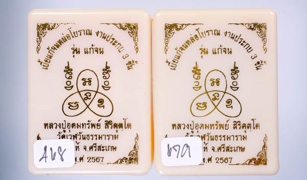 *ทีเดียว 2 ลูก 2 เนื้อ หลวงปู่มหาศิลาร่วมเศก เบี้ยแก้จนหล่อโบราณ ประกบ3ชิ้น อุดมวลสาร หลวงปู่อุดมทรัพย์ สิริคุตโต วัดเวฬุวันธรรมาราม สวยมาก เคาะเดียวแดง* |